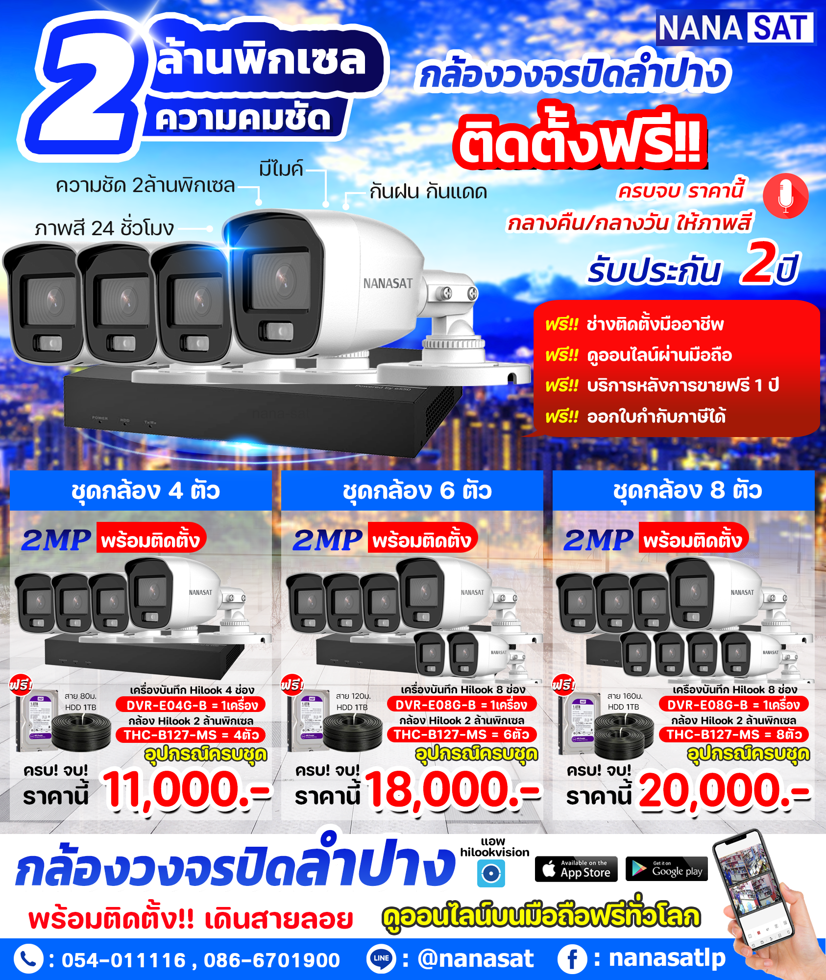 ติดตั้งกล้องวงจรปิด ยี่ห้อ Hilook ความคมชัด 2MP ติดตั้งกล้องวงจรปิดลำปาง นานาแซท พร้อมบริการติดตั้งฟรี เดินสายติดกิ๊บ